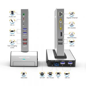 Cu 14 accesorii USB, Docking Stations universal Wavlink USB 3.0 cu baza HDD Enclosure ofera o statie de lucru cu caracteristici complete pentru a extinde conectivitatea fara a va face griji pentru deficienta de porturi pentru laptop, Ultrabook sau tableta Microsoft Surface Pro.
