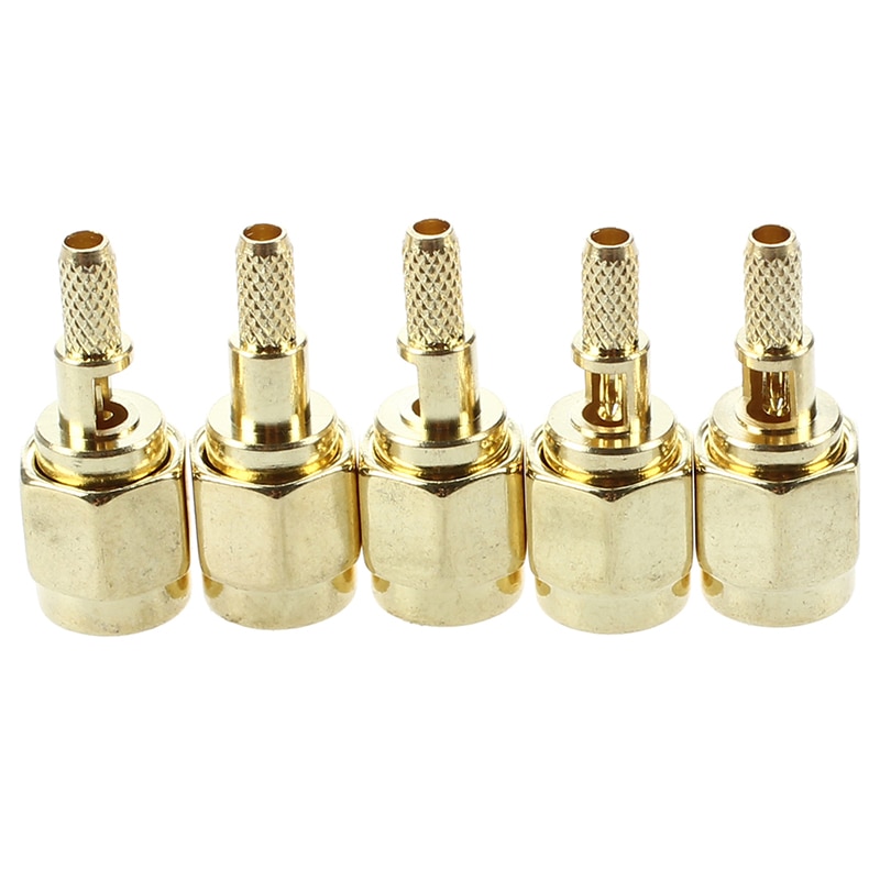 Caracteristici: corp metalic auriu, mufa tata SMA, diametrul firului este de 7 mm, diametrul maxim al cablului fara ecranare este de 2 mm (cel care intra in mufa) .